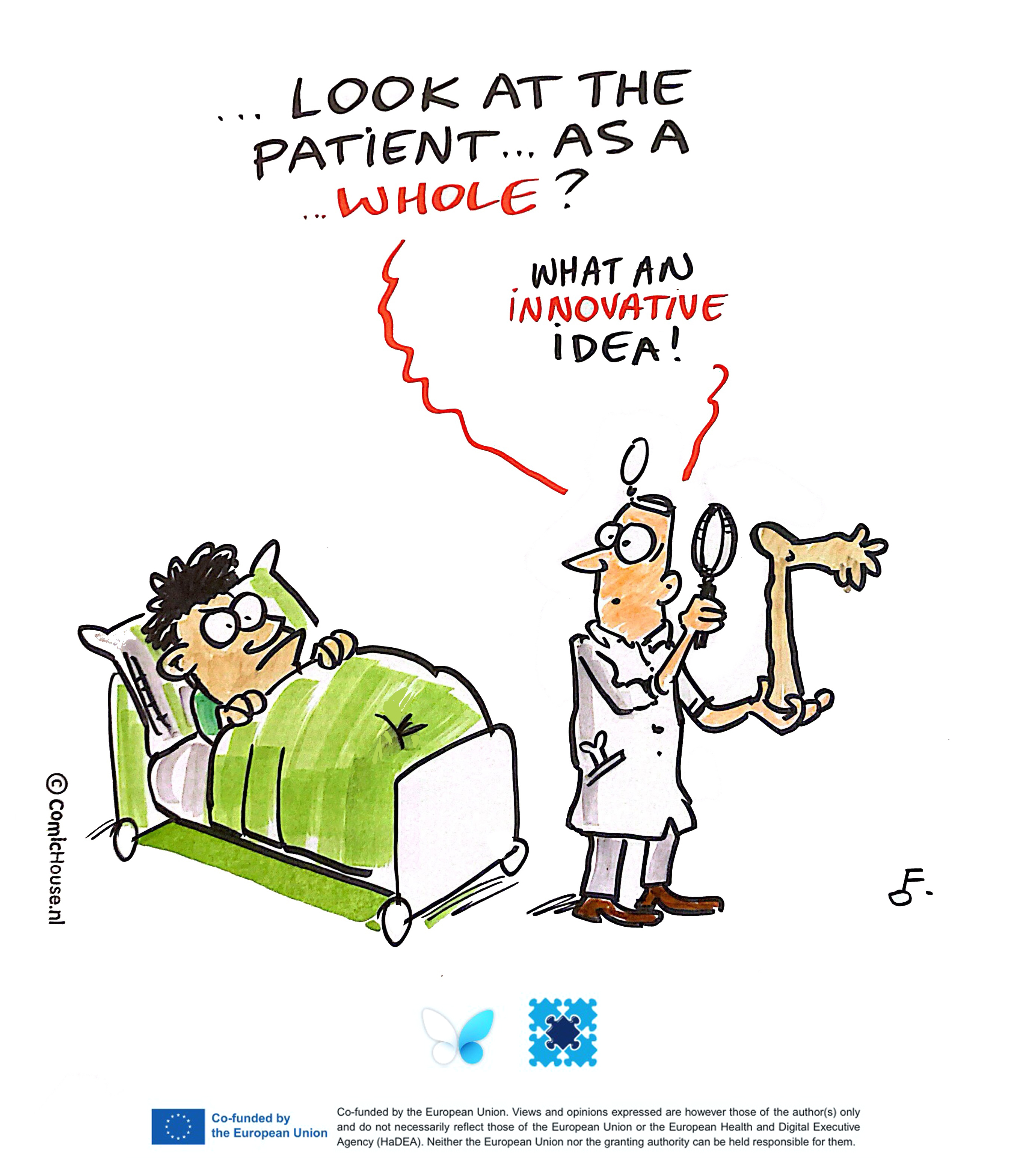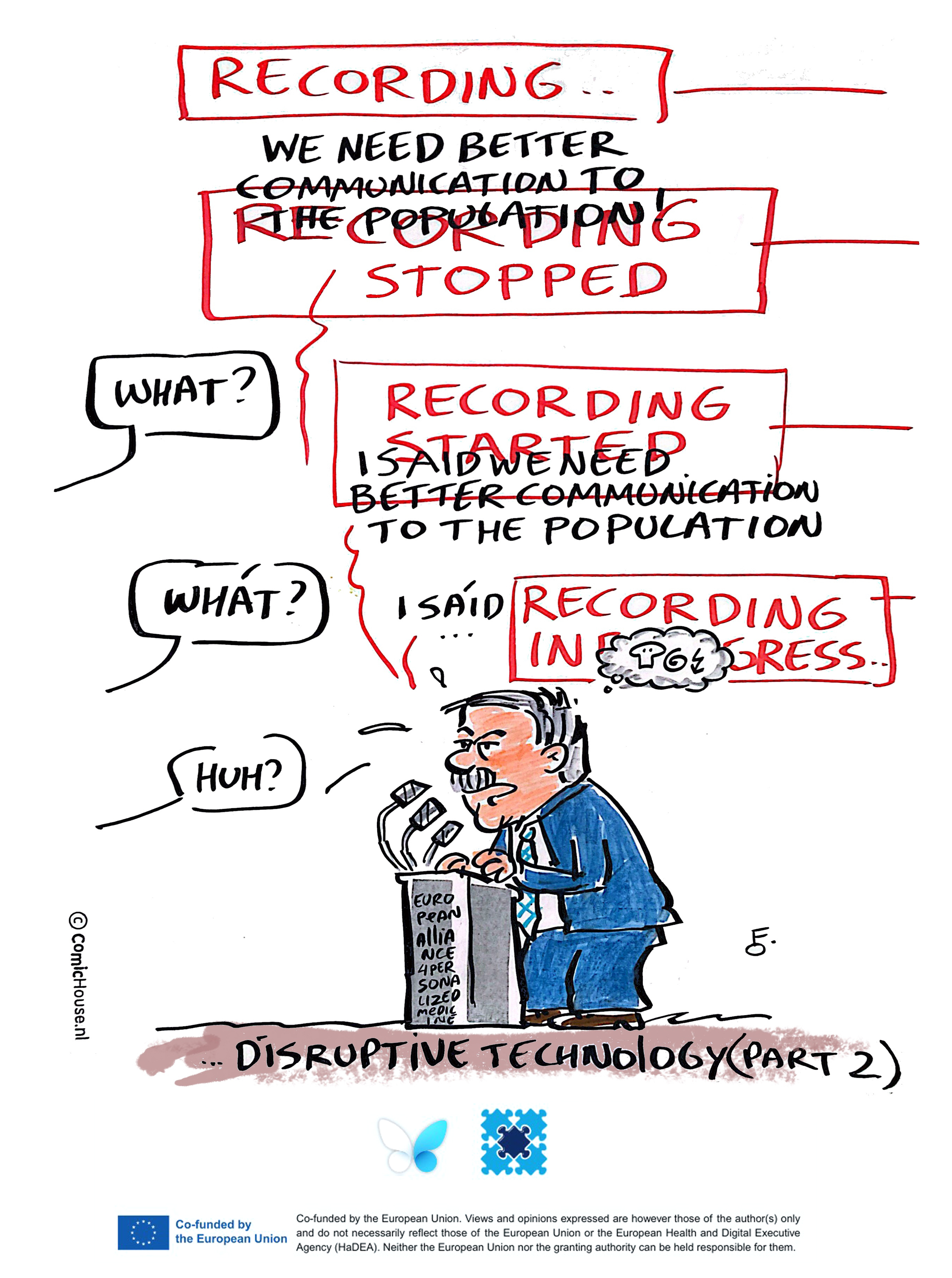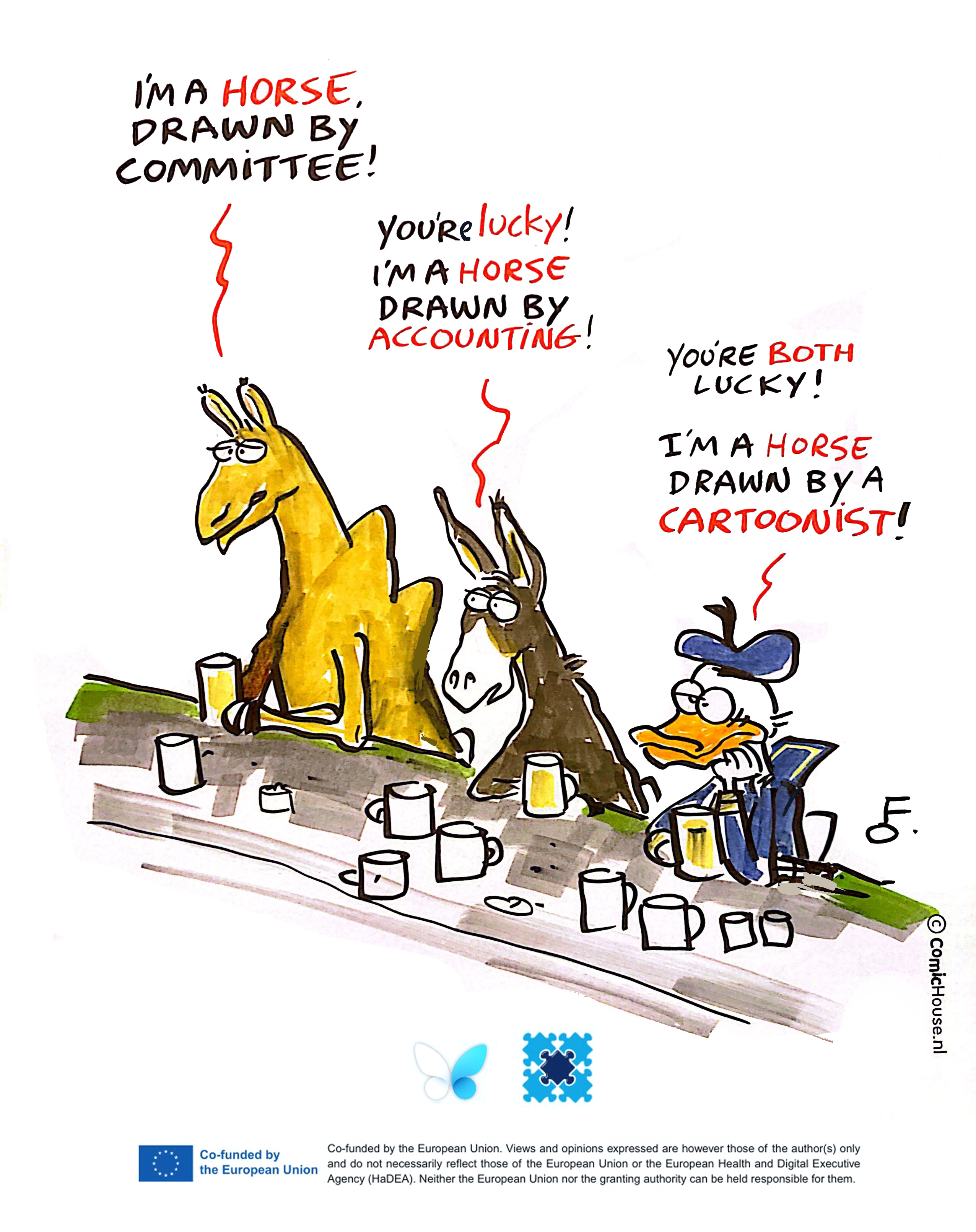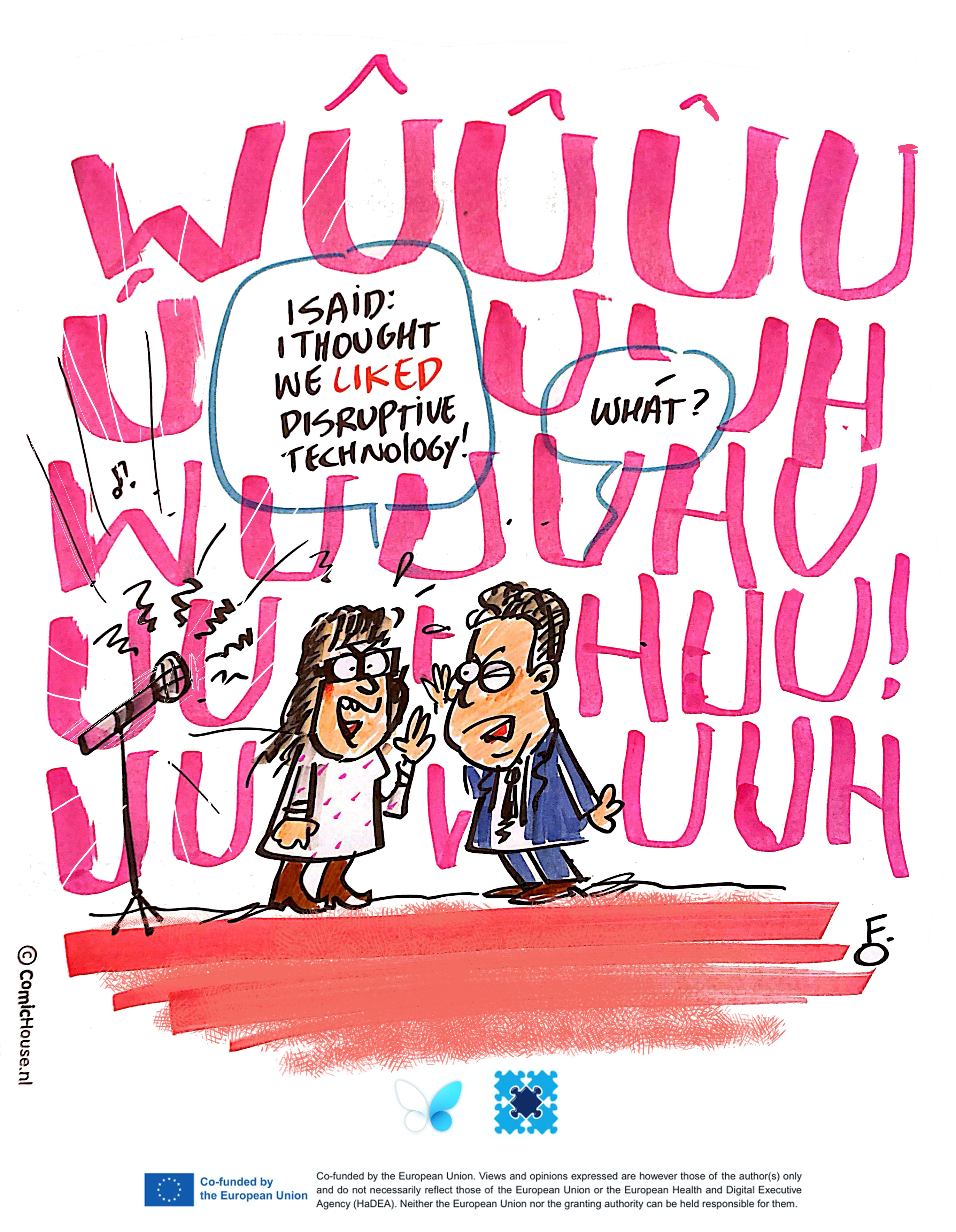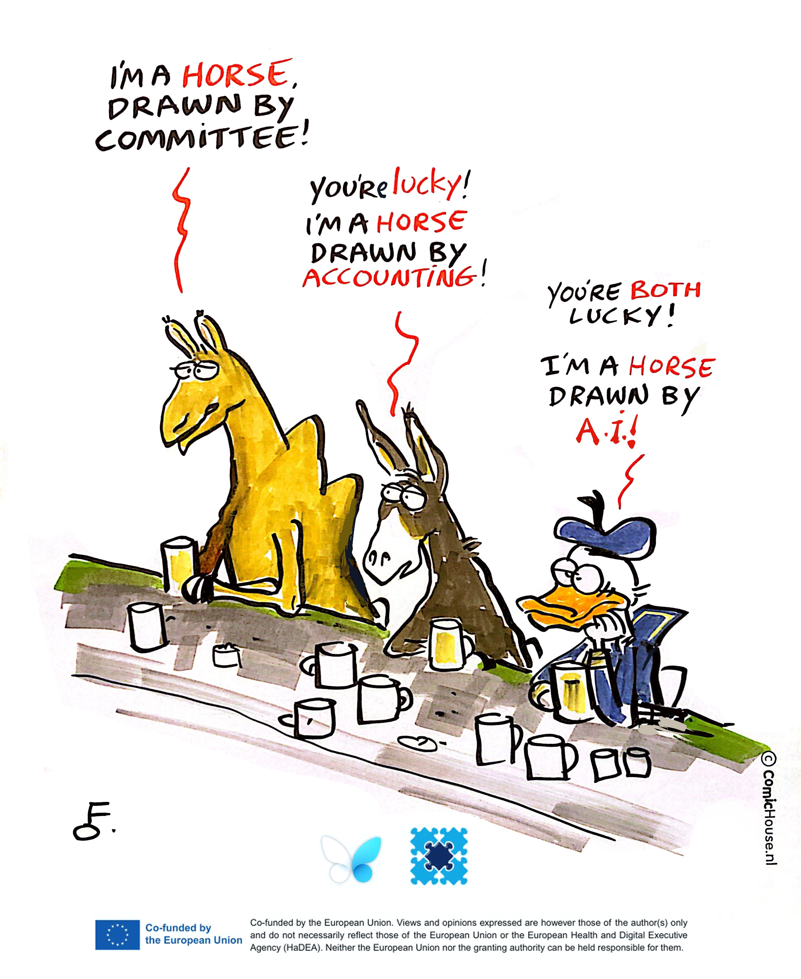 This gallery brings together all the illustrations created throughout the two-days event in Brussels. Each cartoon distills an important message, theme, or insight from the speakers and sessions, offering a unique and creative lens on the future of healthcare in Europe. Explore the gallery to rediscover the conversations, the energy, and the vision that shaped VISION EUROPE 2030, now brought to life through art.